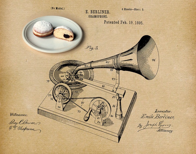 August 3 1929 Emile Berliner, the inventor of the Gramophone in Washington, DC died at the age of 78. His 1895 hand cranked machine pioneered the use of 7 inch, flat records. Berliner's heart attack was brought on by RSI of his cranking arm and consuming too many Berliners! Unfortunately Emile had liking to the South Australian version of the Berliner which was filled with jam, dusted with sugar, slashed along one side and filled with whipped cream. During World War I, the antipathy towards all things German even extended to food. In South Australia, the popular doughnut-like bun called a Berliner was renamed as a Kitchener Bun.