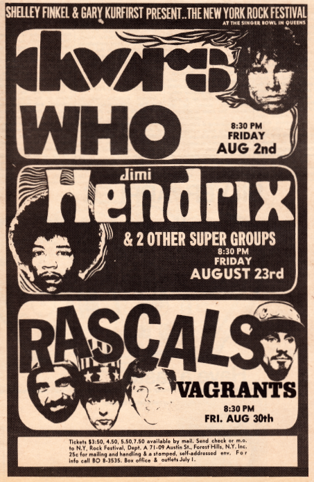 The Jimi Hendrix Experience, Soft Machine and Big Brother And The Holding Company played at the New York Rock Festival in Queens. With a capacity crowd and all the over flow from the porta vacs it was from that point on called Flushing Meadows.