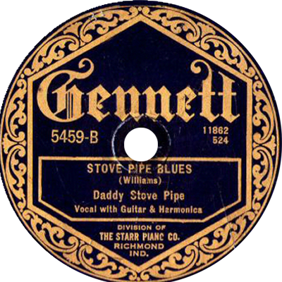 On May 10th 1924, Daddy Stovepipe went to Richmond Indiana to record for the Gennet label. He put down three tracks: ‘Stovepipe Blues’ was issued with the jaunty ‘Sunset Blues’ on the flip side, with the other track, ‘Tidewater Blues’ remaining unissued. Three years later he recorded in Atlanta with an obscure whistling Bluesman where they were billed as “Sunny Jim and Whistlin’ Joe”.