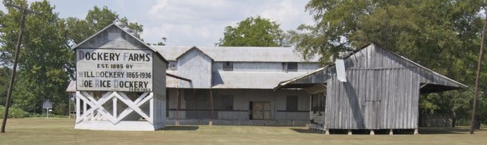 Dockery Farms, one of the most important plantations in the Delta, was founded in 1895 by William Alfred “Will” Dockery (1865-1936). Dockery purchased thousands of acres bordering the Sunflower River and worked for years to clear the swampy woodlands. In the early 20th century Dockery housed four hundred tenant families, most of whom were African Americans who migrated to the region in pursuit of work. Will Dockery earned a reputation for treating his tenants fairly, and many resided there for long periods of time. African Americans who worked at Dockery, including blues pioneer Charley Patton, created a culture that inspired the music we know as the blues. Their songs influenced the development of popular music all over the world.