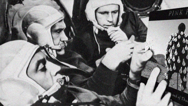 November 26th 1988, Russian cosmonauts aboard Soyuz 7 took into space a cassette copy (minus the cassette box for weight reasons) of the latest Pink Floyd album Delicate Sound Of Thunder and played it in orbit, making Pink Floyd the first rock band to be played in space. David Gilmour and Nick Mason both attended the launch of the spacecraft. The claim was disputed by Jim Ford of Horace, Nebraska, USA who claimed that two years earlier aliens stole his entire Kiss collection. Police later recovered the collection in the neighbour's bin.